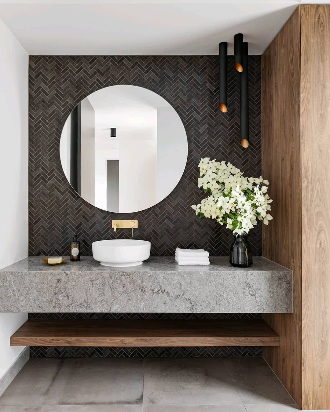 Classic meets contemporary in this glossy black powder room with a timeless herringbone backsplash. Finish it off with a map of your favorite hiking location. 40 powder room ideas to jazz up your half bath. 38 powder room design ideas (photos) bathrooms / photo galleries, small. Modern powder rooms take comfortability and luxury to the next level. See more half bathroom ideas that will help you make a style statement even in a small space. Here is a photo gallery of 38 different but beautifully designed powder rooms. This beautiful modern bathroom uses a blend of old and new: Powder bathroom ideas img src : Check out this beautiful powder room interior by werschay homes to get a few ideas in that sense. You could even use it to create a statement piece, such as a gold sink or tub. Welcome to our powder room designs article where we set out design statistics, an extensive photo gallery and detailed guide. 25 modern powder room design ideas.